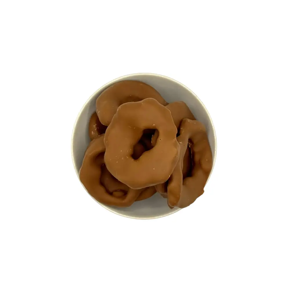 Unsere Apfelringe werden aus sorgfältig ausgewählten, sonnenverwöhnten Äpfeln hergestellt, schonend getrocknet und anschließend mit feinster Vollmilchschokolade überzogen. Das Ergebnis: ein harmonischer Mix aus fruchtiger Frische und cremiger Schokolade – einfach unwiderstehlich!