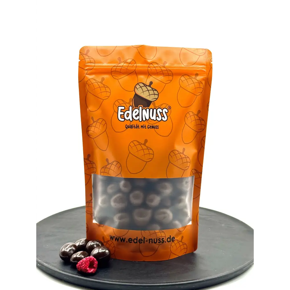 Unsere gefriergetrockneten Himbeeren werden schonend verarbeitet, um Aroma, Farbe und Nährstoffe zu bewahren. Die Ummantelung mit hochwertiger Zartbitterschokolade rundet das Geschmackserlebnis perfekt ab – fruchtig, edel und ausgewogen.